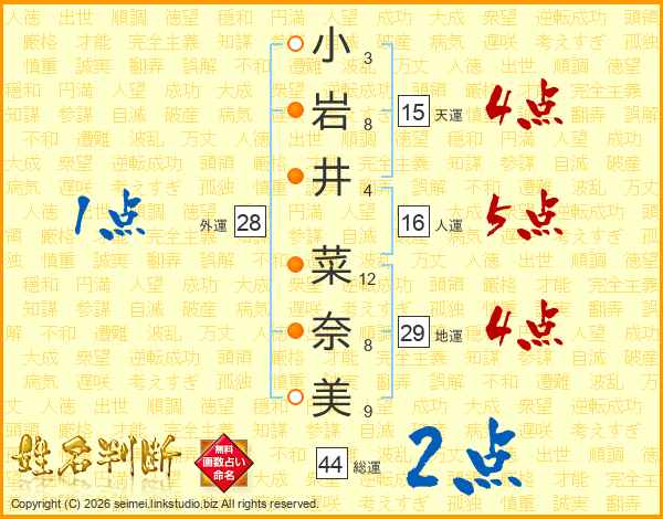 小岩井菜奈美さんの総運は44画の2点!
