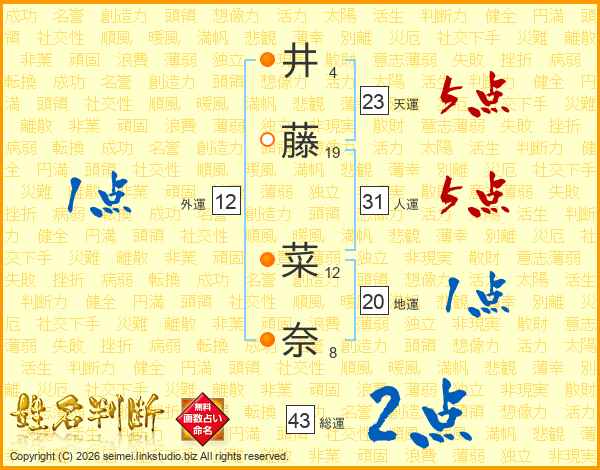 井(4画)藤(19画) 菜(12画)奈(8画)