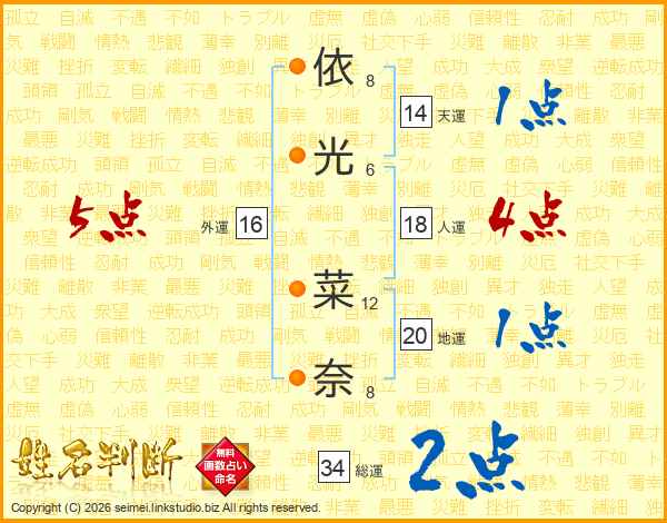依(8画)光(6画) 菜(12画)奈(8画)