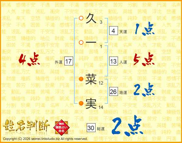 久一菜実さんの人運は13画の5点!