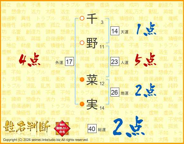 千野菜実さんの総運は40画の2点!