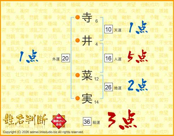 寺井菜実さんの地運は26画の2点!