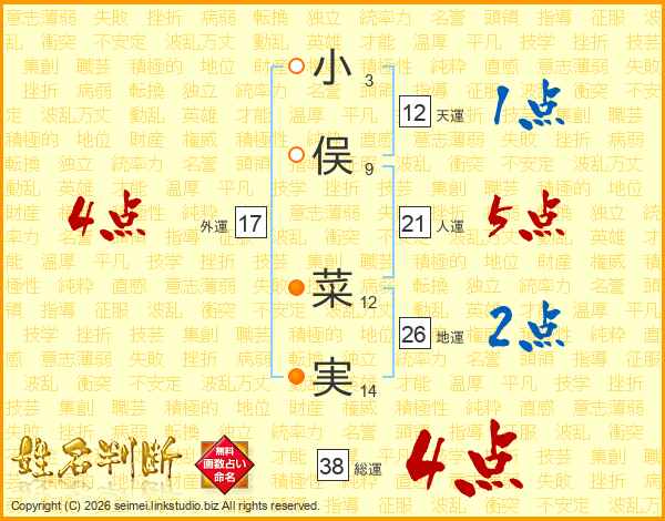 小俣菜実さんの外運は17画の4点!
