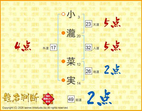 小瀧菜実さんの天運は23画の5点!