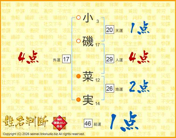 小磯菜実さんの総運は46画の1点!