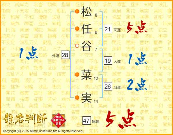 松(8画)任(6画)谷(7画) 菜(12画)実(14画)