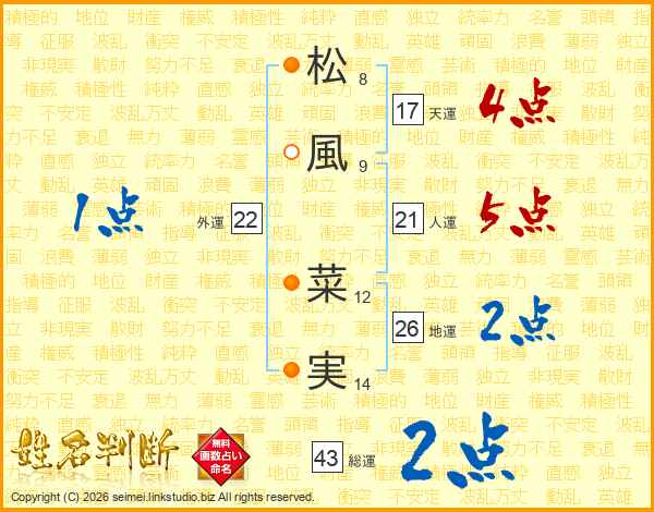 松風菜実さんの地運は26画の2点!
