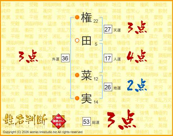 権田菜実さんの地運は26画の2点!