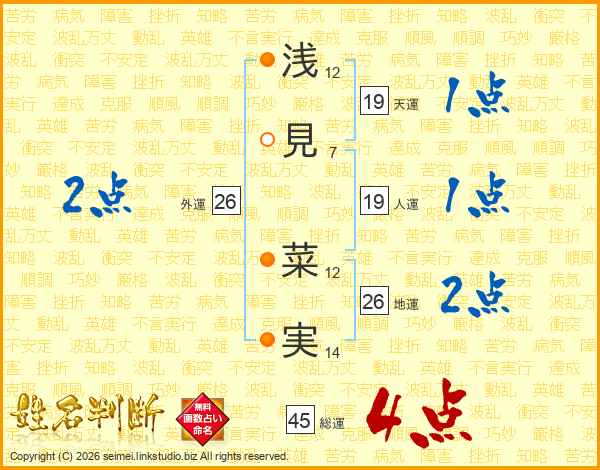 浅(12画)見(7画) 菜(12画)実(14画)