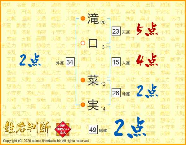 滝口菜実さんの総運は49画の2点!