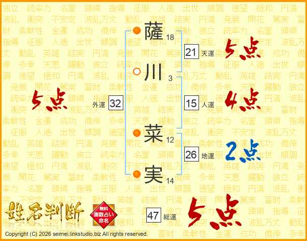 薩川菜実さんの総運は47画の5点!