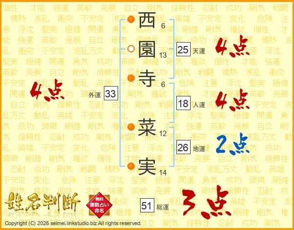 西園寺菜実さんの外運は33画の4点!
