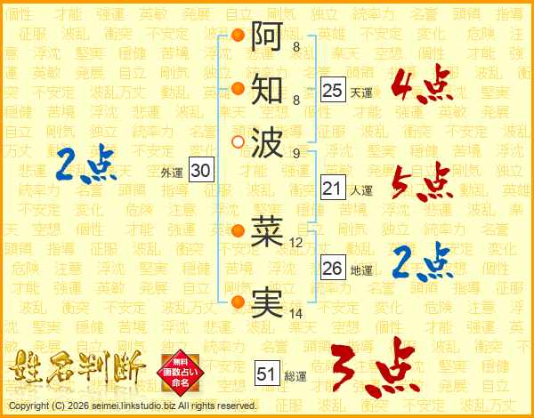 阿知波菜実さんの地運は26画の2点!