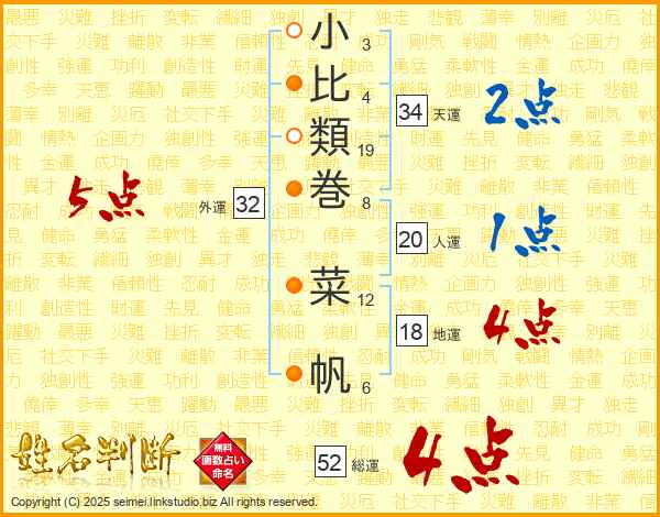 小(3画)比(4画)類(19画)巻(8画) 菜(12画)帆(6画)