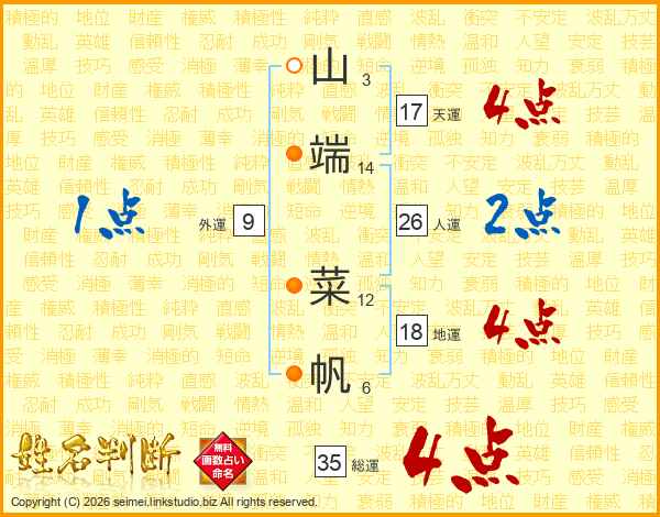 山端菜帆さんの総運は35画の4点!