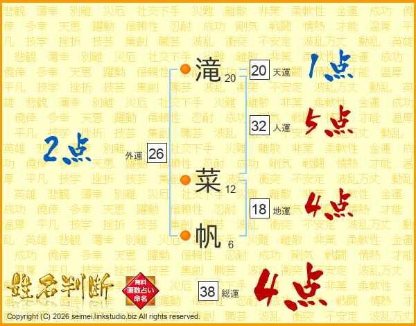 滝菜帆さんの総運は38画の4点!