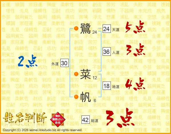 鷺菜帆さんの総運は42画の3点!