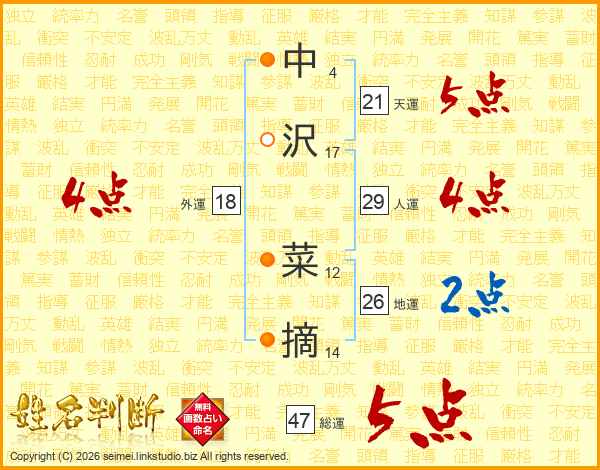 中沢菜摘さんの地運は26画の2点!