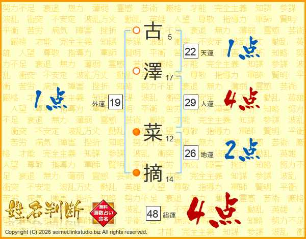 古澤菜摘さんの地運は26画の2点!