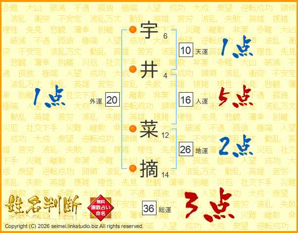 宇井菜摘さんの地運は26画の2点!