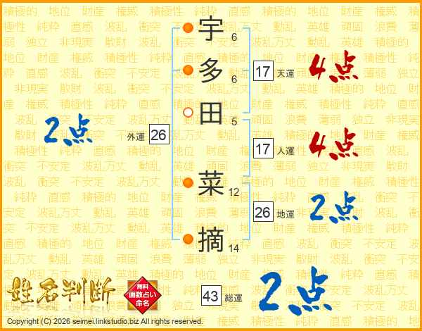 宇多田菜摘さんの総運は43画の2点!