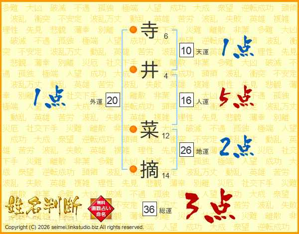 寺井菜摘さんの地運は26画の2点!