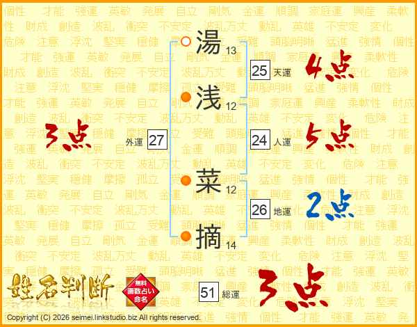 湯浅菜摘さんの地運は26画の2点!