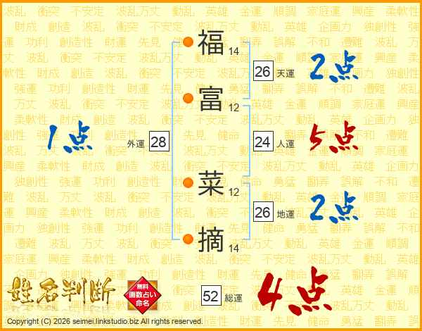 福富菜摘さんの天運は26画の2点!