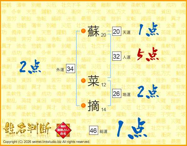 蘇菜摘さんの総運は46画の1点!