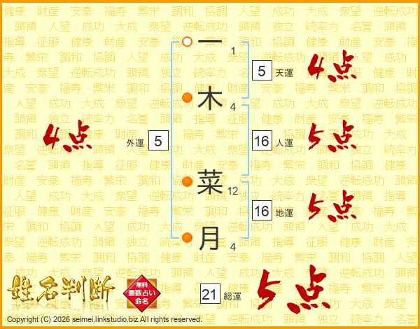 一木菜月さんの総運は21画の5点!
