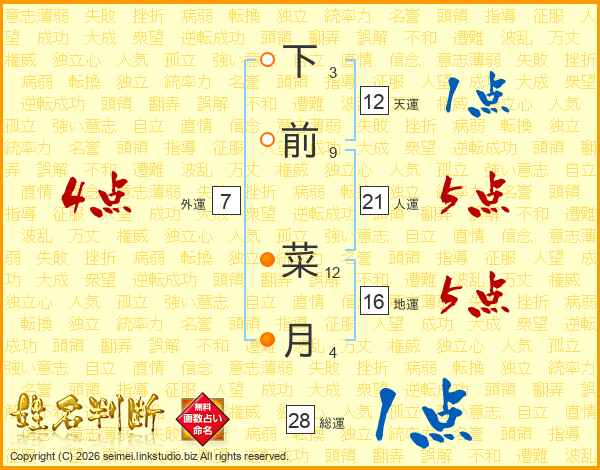 下前菜月さんの総運は28画の1点!