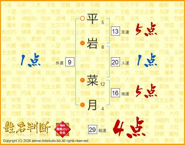 平岩菜月さんの総運は29画の4点!