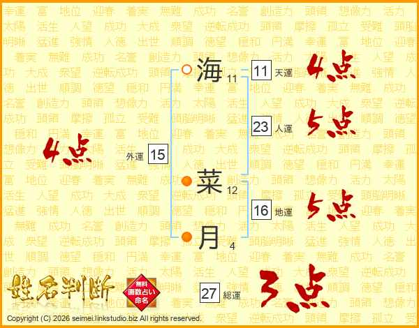 海菜月さんの総運は27画の3点!
