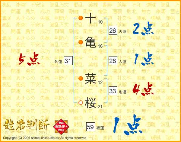 十亀菜桜さんの天運は26画の2点!