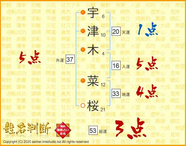 宇津木菜桜さんの外運は37画の5点!