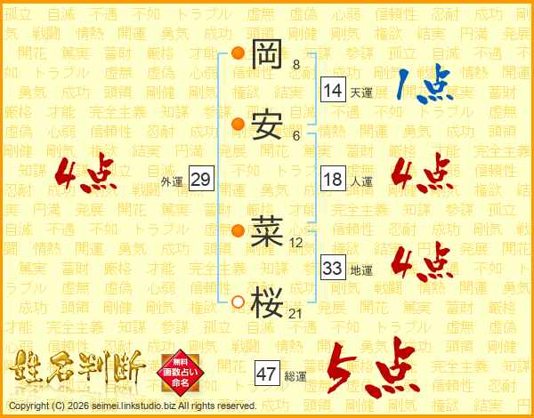岡安菜桜さんの総運は47画の5点!