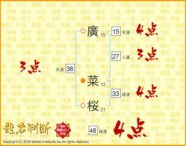 廣菜桜さんの総運は48画の4点!