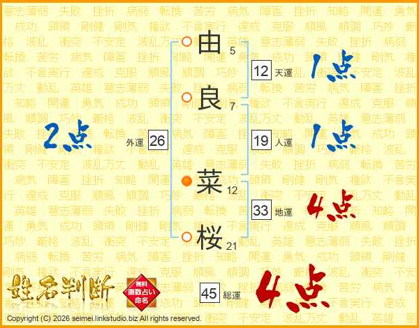 由良菜桜さんの総運は45画の4点!