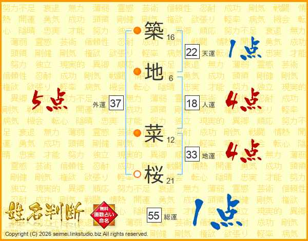 築地菜桜さんの地運は33画の4点!