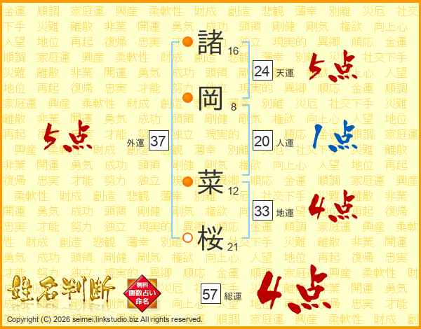 諸岡菜桜さんの外運は37画の5点!