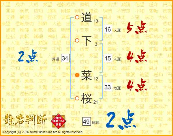 道下菜桜さんの地運は33画の4点!