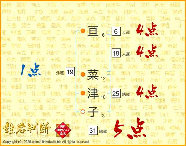 亘菜津子さんの総運は31画の5点!