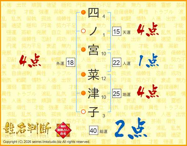 四ノ宮菜津子さんの外運は18画の4点!