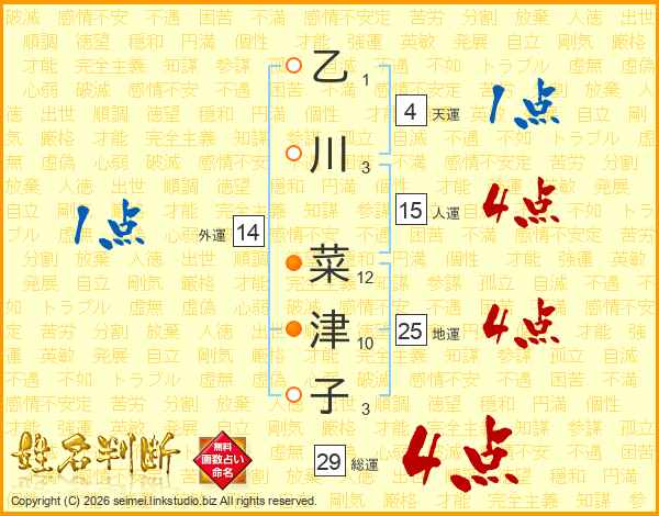 乙川菜津子さんの総運は29画の4点!