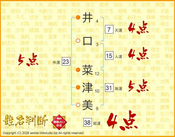 井口菜津美さんの総運は38画の4点!