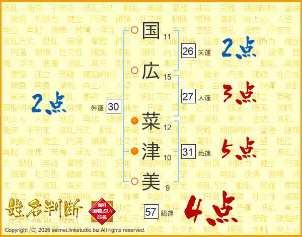国広菜津美さんの総運は57画の4点!