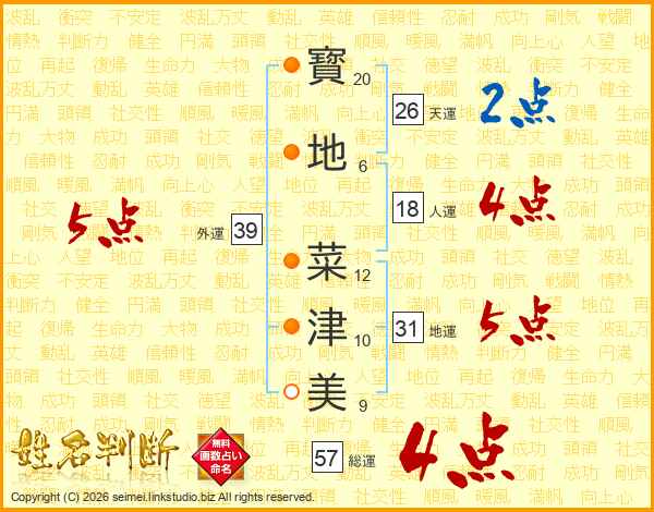 寳地菜津美さんの天運は26画の2点!