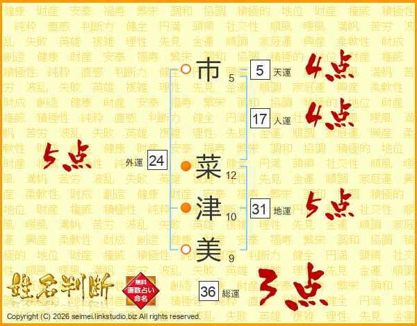 市菜津美さんの総運は36画の3点!