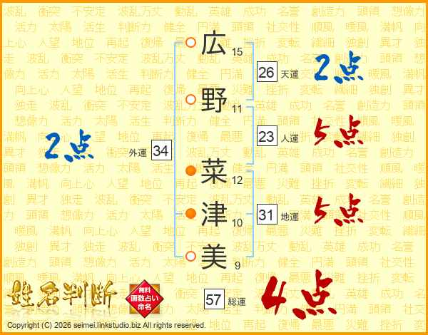 広野菜津美さんの総運は57画の4点!