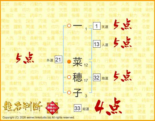 一菜穂子さんの総運は33画の4点!